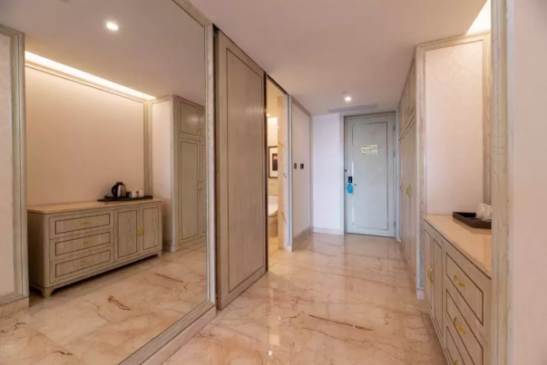 玄关处有一盏5W射灯即可,没有吊顶可以用明装射灯。也可以安装一盏离地2米~2.1米的吊灯,5W就够了。