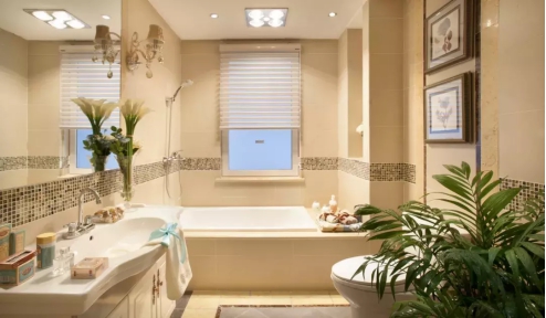 卫生间别看面积不大,里面的灯光可是大有名堂。卫生间的灯光设置不合理,在镜子前人脸会出现阴影,不利于化妆、刮胡子等脸部清洁活动。在镜前区增加镜前照明,光源均匀打在脸上,可以避免出现上述情况。