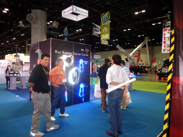 4月24-26日,蓝景光电李总携公司外贸部精英远渡重洋到美国奥兰多会议中心参加2014 ISA INTERNATIONAL SIGN EXPO,蓝景的LED产品在会展中心闪亮登场,此次展会上我司的展览面积达到36平方, 我司在展会上重点向客户展出了今年的创新之作:YD7三星2323长条系列——主要应用于5-10CM的超薄单面灯箱背光解决方案, IP65防水透镜注塑模组——主要应用于10-15CM厚的标识字照明解决方案,高显80的LED装饰照明光条&硬条——主要应用在星级酒店、KTV、休闲会所、高端室内建筑装饰装修照明光源。这些产品均是2014年我司推出的精品,以其易安装,低成本,稳定性强,光效一致性好等众多优点,并含盖了标识照明应用领域的各个环节,成为整个展会的亮点,并得到了广大美国客户和美籍侨胞们的一致认可和称赞。