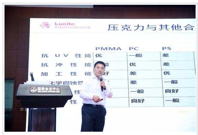 璐彩特国际的市场经理王国省从亚克力最原始的状态介绍亚克力的技术以及成型工艺,揭秘亚克力的形成是一个化学变化+物理变化的一个科技过程。