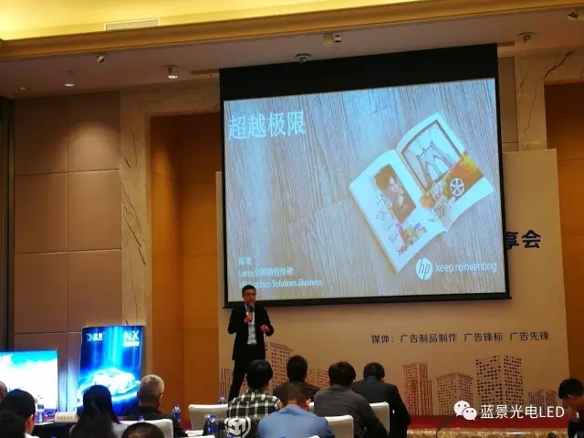中国惠普有限公司 全国高级销售经理 陈梁具有10多年宽幅数字打印行业销售和市场推广运作经验。分享了HP latex的健康环保新型打印以及在各领域的应用,重点介绍了HP Latex墨水的安全性(不易燃、不可燃、无危险物警告标签),以及给客户带来的价值(无味印刷品、符合最终客户应用最高健康和环境标准)。