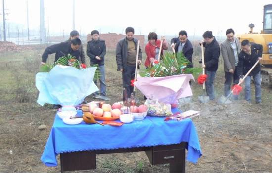 我公司投资三千万的新厂房于2010年4月2日正式开工了,今日早上8:00举行了奠基仪式。