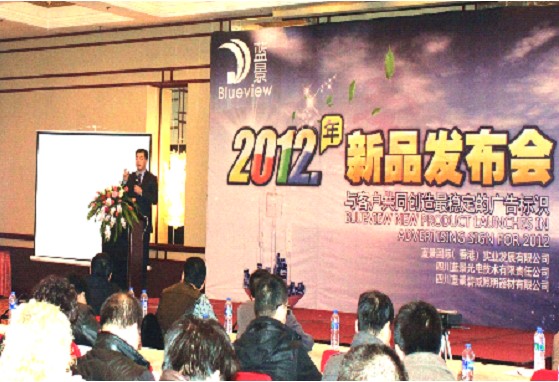 本报讯:2012年2月15日,四川蓝景光电有限责任公司“2012年新产品发布及客户答谢会”,在古城西安香格里拉金花大酒店成功举行。蓝景光电总经理李忠训先生,蓝景光电副总经理张文高先生,陕西省广告协会标识委员会会长庞建华先生,以及业内人士、经销商、重要客户、媒体记者等300余人出席了本次发布会。