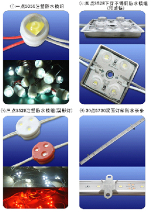 每个产品包含一个SMD 5050表贴灯组成;单灯亮度超过12Lm,衰减更为优异,特别适用于外露发光字;产品经过高温注塑,根据光学特点特殊设计扩散罩,极大的提高了芯片的发光角度;直流12伏电压输入,单灯可剪,串联数量不超过30组。