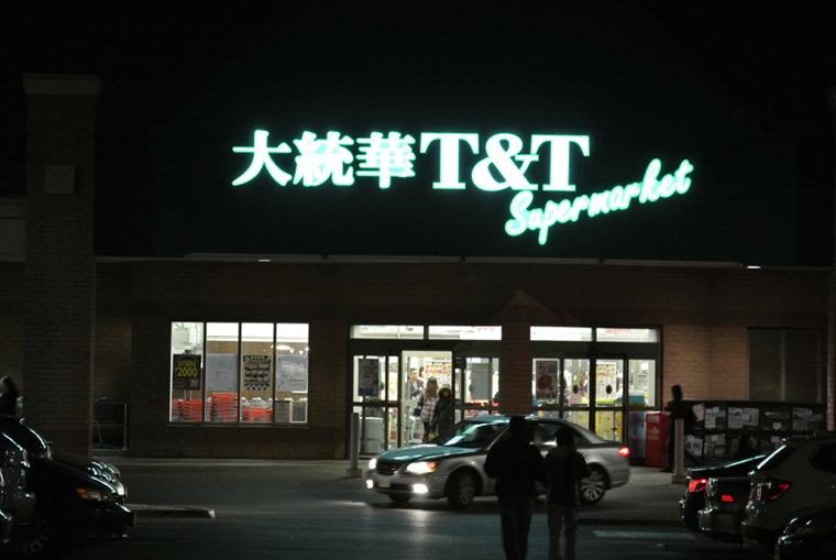 多伦多市大统华连锁超级市场标识照明夜景侧面效果