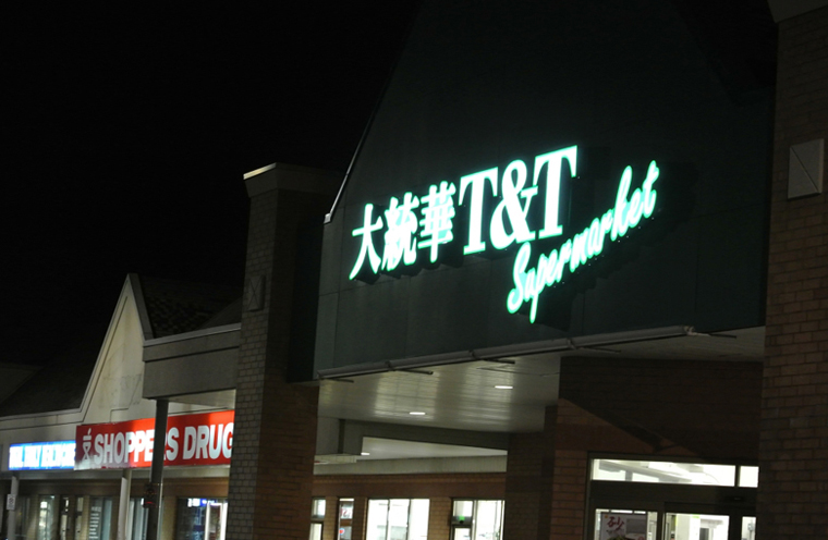 多伦多市大统华连锁超级市场标识照明夜景正面效果