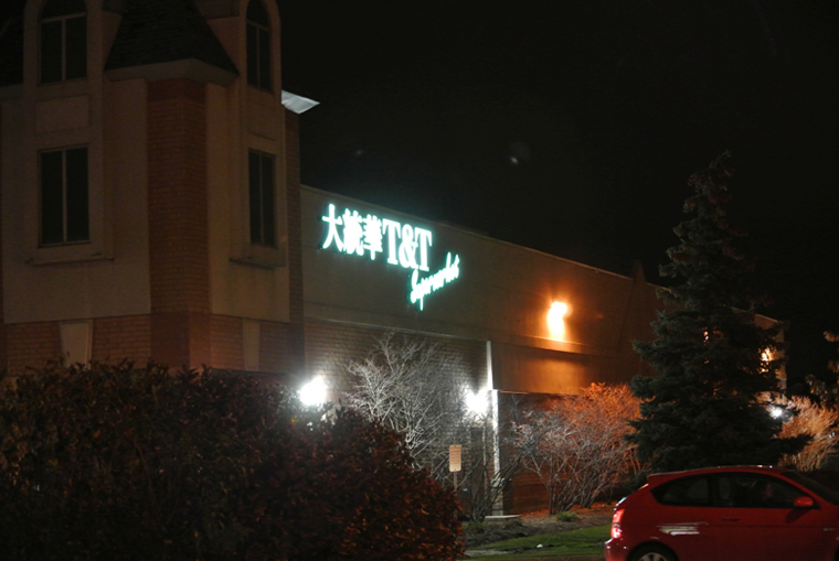多伦多市大统华连锁超级市场标识照明夜景后门效果