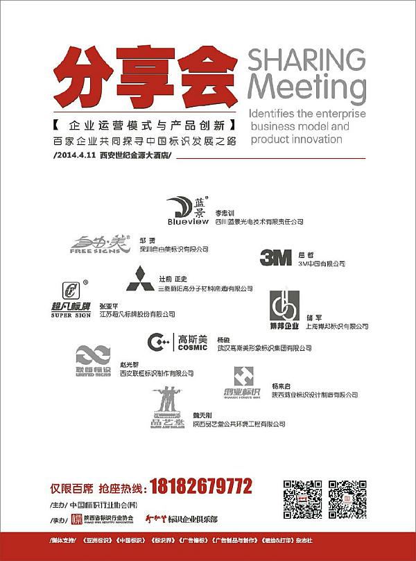 近年来,随着中国经济的快速发展,城市化进程及城市基础建设的进一步完善,市场对高品质标识文化的需求空前增长,巨大的市场份额吸引了众多的标识企业如雨后春笋般不断涌现,中国的标识行业呈现出了一副欣欣向荣的的景象。但由于我国标识产业作为特定的专业类型起步较晚,大多数企业正处于成长阶段,存在着缺乏统一标准、同质化严重、恶性竞争、企业目标愿景与定位不清晰等产业弊端。从中国标识行业的发展来看,目前正处于高速成长向成熟化的转化期。在此阶段,很多企业都会遇到自己规范化转型与发展的瓶颈,但也有部分标识人在此阶段由于非常重视创新在企业发展过程中的作用,或者在企业经营方面,或者在产品方面,或者在营销模式方面大胆创新,从而让企业相对顺畅的步入快速发展的通途,并因此脱颖而出。整个行业希望分享这些优秀企业的创新理念、经验、实践等。因此,由行业协会牵头,标识企业与标识行业配套企业共同参与举办《探寻中国标识企业发展之路:经营模式与产品创新分享会》,通过探讨、分享标识行业企业的经营模式、发展方向、创新与开发的思路与心得,从而为更多的中国标识企业搭建起抛砖引玉、分享借鉴的共赢平台。
