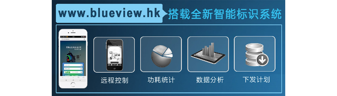 该产品搭载蓝景LED智能标识系统(www.blueview.hk),您可以用手机、电脑远程遥控灯箱,实现亮度调节达到节能目的,同时您还可以根据灯箱使用情况制定相应计划,下发到智能平台执行。
