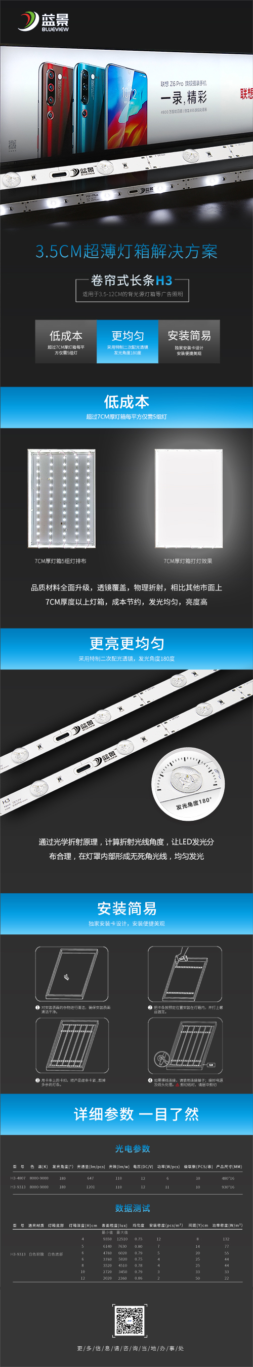 超过7CM灯箱每平方仅需5组灯——蓝景H3长条(3.5CM超薄灯箱解决方案)