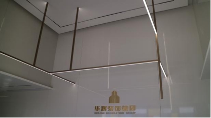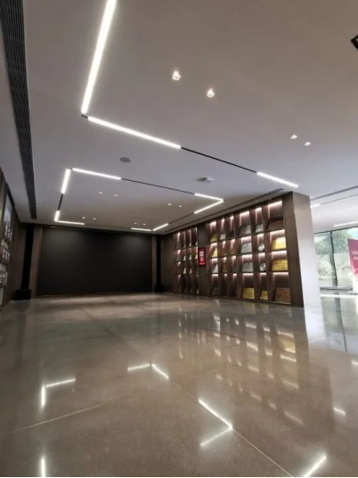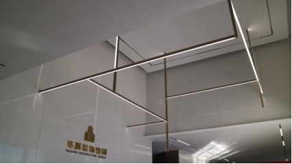 广西华辉装饰集团有限公司大堂整体空间照明采用线性灯具,灯具采用智能控制模式,实现灯光补偿(大堂灯光随着环境亮度进行调节);还增设有人工控制方式,全部采用DC24V电压工作,接入蓝景智能系统实现多种功能。