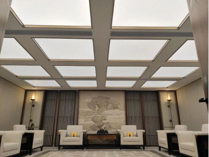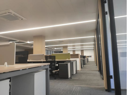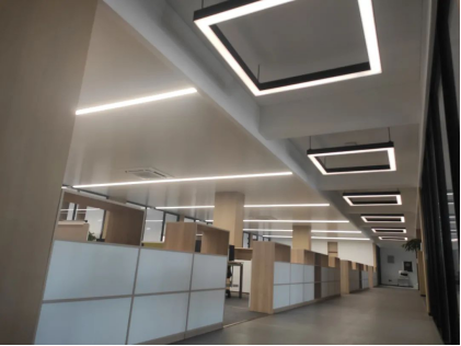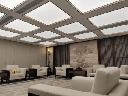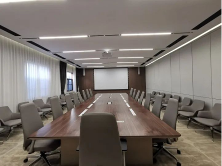 灯光采用线性灯和天花灯结合,线性灯整条控制,天花灯具采用单灯控制模式;会议室满足放映、讨论及接待等模式,由蓝景智能控制系统进行灯光的控制。