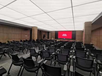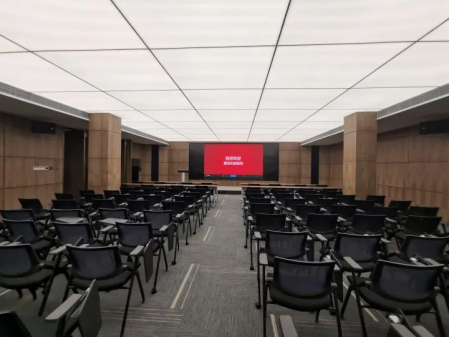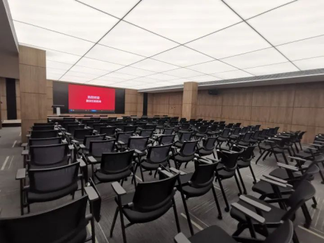 灯光采用30型线性灯,无缝造型拼接 ,高显低温。吊线筒灯采用防眩型,不仅提高了画面的清晰度和能量,还能减少画面的反射,使图像更清晰,更逼真。透明部件采用先进的照明光学原理进行优化设计,光线均匀,柔和,无眩光,无重影,给与会人员打造一个轻松、高效的氛围,有效避免灯光造成的不适和疲劳。