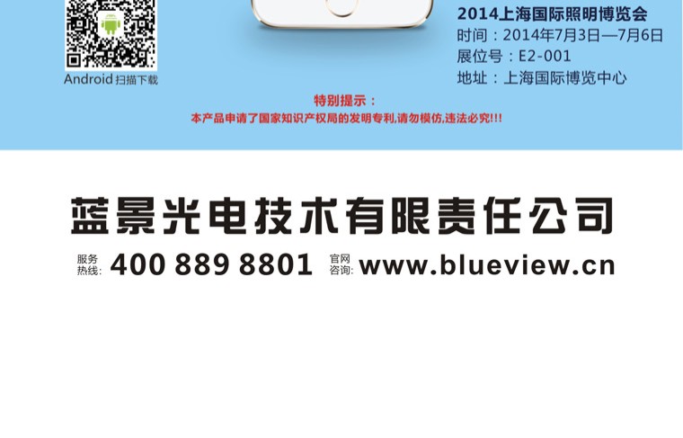 蓝景光电研发部最新研发的WOFO-104智能标识色温调式系统成功面世,将于2014年7月3号的上海国际照明博览会E2-001蓝景展馆隆重发布上市,蓝景智能LED标识照明系统将开放式面向客户全程体验,届时您将亲身体验到LED智能照明的强大功能和创新魅力!欢迎新老客户和媒体朋友们亲临展位指导交流,见证蓝景创业史上的又一次成功飞越!