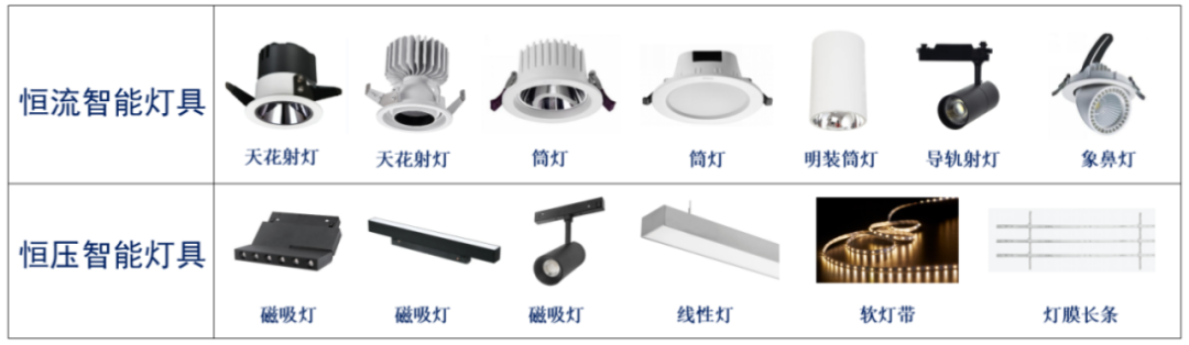 筒灯、天花射灯、导轨灯基本是恒流产品,特别是COB光源配套的灯具,恒流方式是主流;灯膜、线性灯大部分是恒压产品。